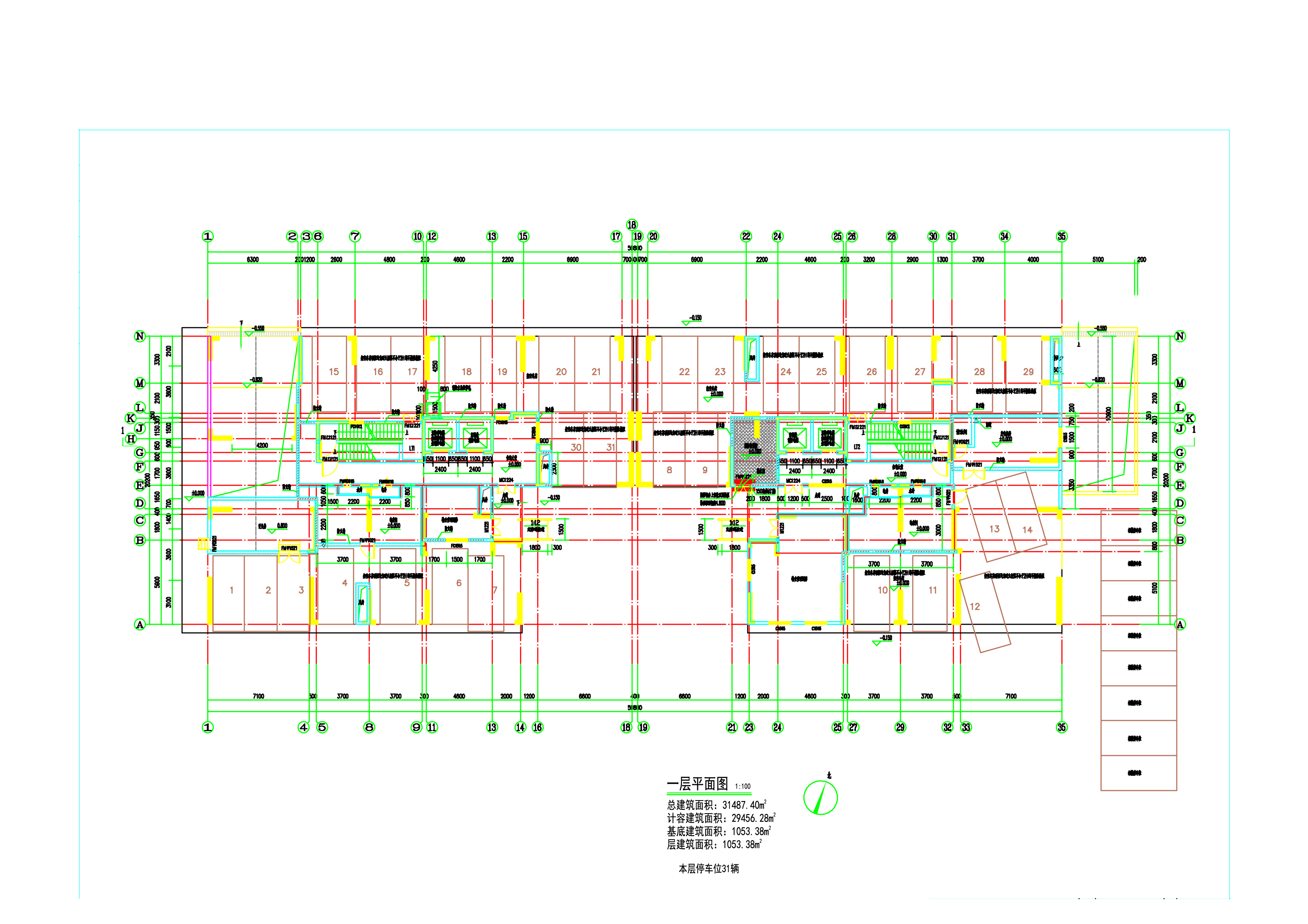 本次報(bào)來設(shè)計(jì)方案主要為外立面調(diào)整,修改如下:1、原負(fù)一層電表間移至首層相應(yīng)位置。2、負(fù)一層排風(fēng)機(jī)房移至原電表間位置,原排風(fēng)機(jī)房改為停車位(新增1個(gè)停車位)。3、負(fù)一層送風(fēng)機(jī)房變更為專電配電房,送風(fēng)機(jī)房移至負(fù)一層原電表間位置。4、首層34軸G*軸為發(fā)電機(jī)房。5、首層1軸*C軸車道頂增加高壓配電開關(guān)房。6、首層智能機(jī)械停車位移至35軸*C軸車道頂。7、首層⑧、⑨號(hào)停車位改為物業(yè)用房(減少2個(gè)停車位)。8、室外東北角增加1個(gè)停車位,停車位總數(shù)不變。