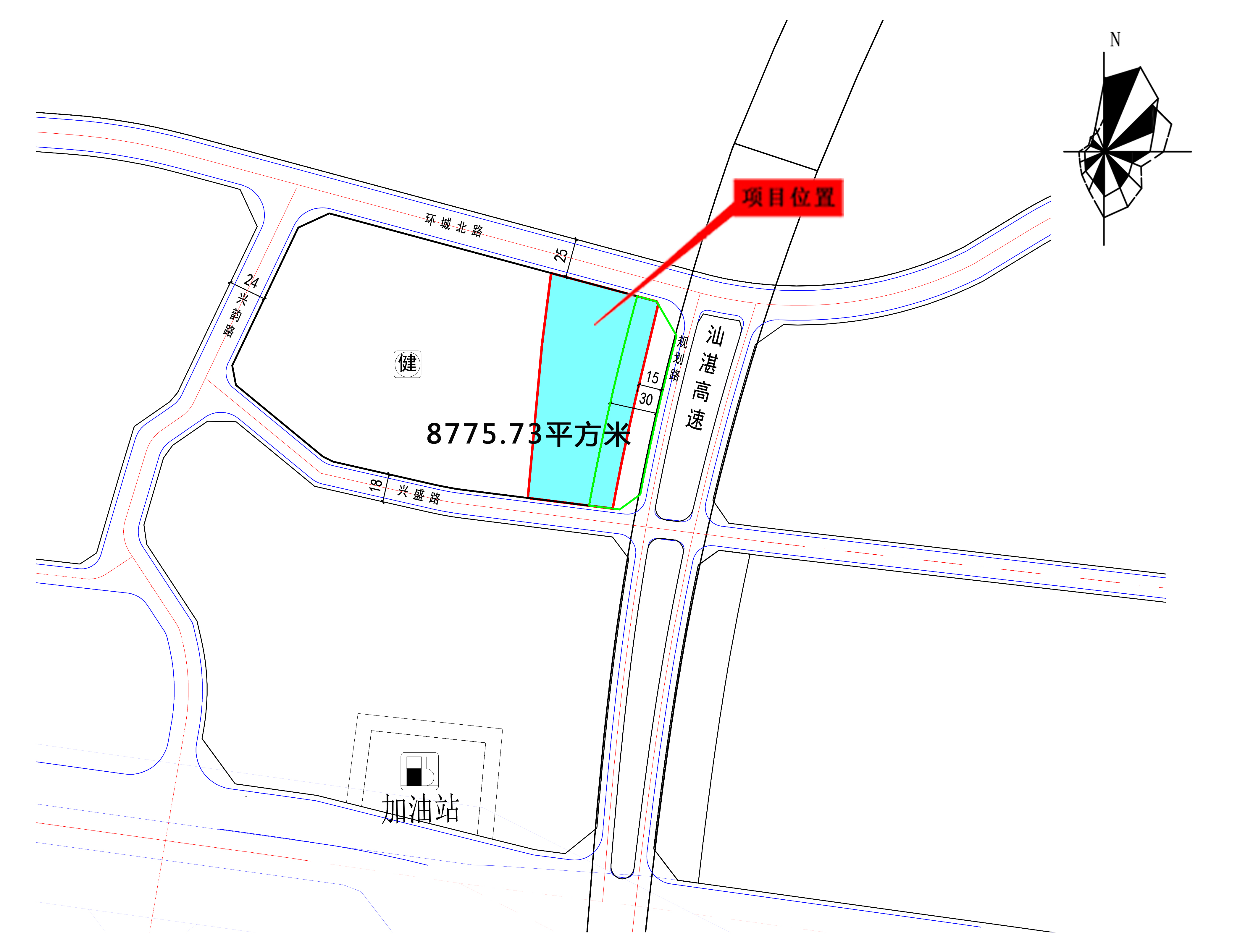 總用地面積為8775.73平方米,其中,6718.37平方米用地性質(zhì)為行政辦公用地(A1), 容積率≤1.5,建筑密度≤30%,綠地率≥30%,地上建筑限高≤30米;2057.36平方米用地性質(zhì)為防護(hù)綠地(G2).
