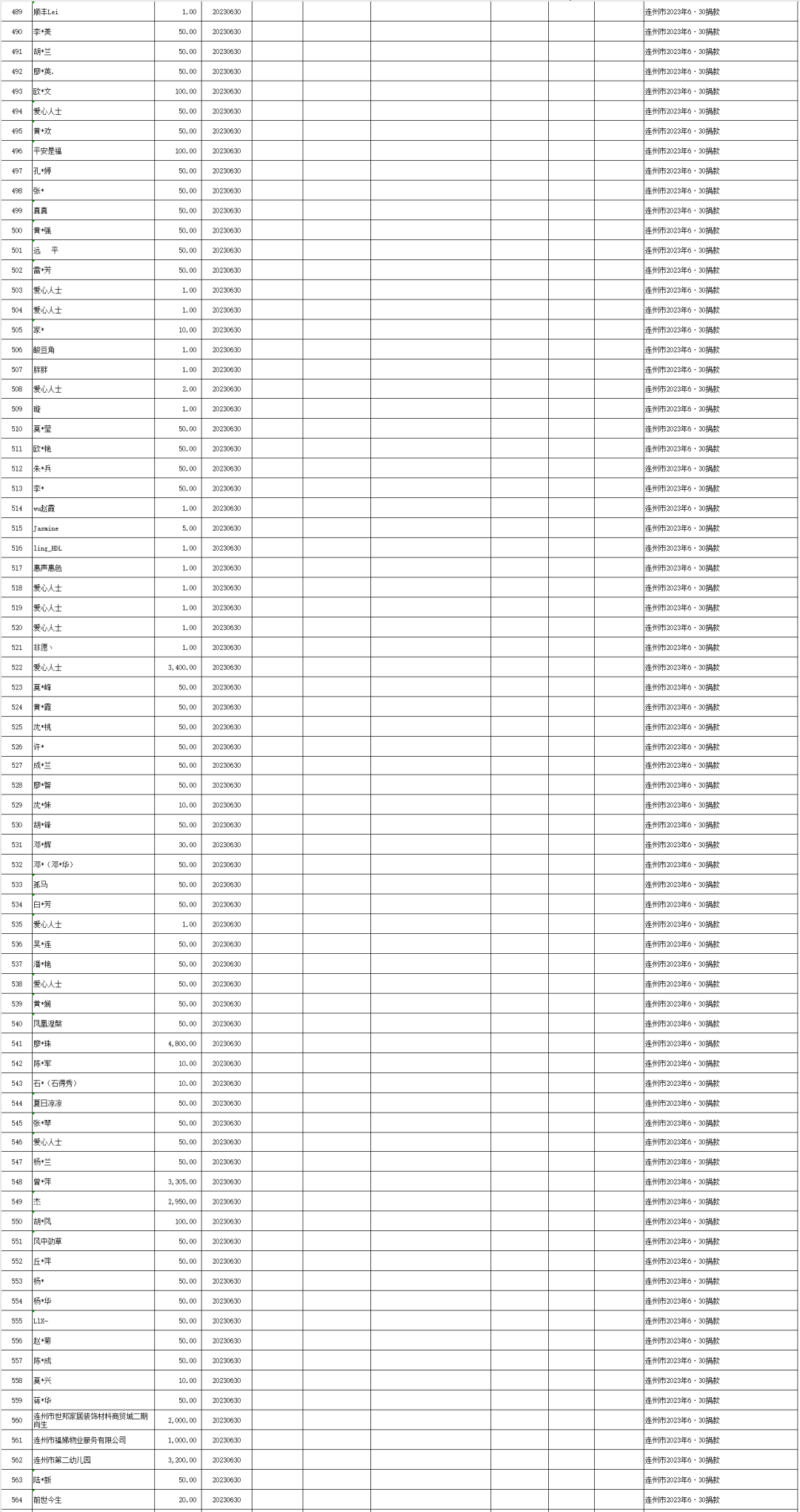 清遠市慈善總會捐贈收支明細表(2023年連州“6.30”活動捐款)