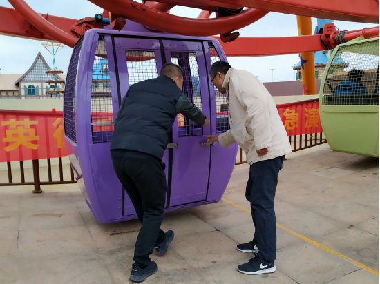 (檢查人員現(xiàn)場檢查摩天輪轎廂門鎖等情況)