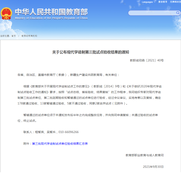 近日,教育部職業(yè)教育與成人教育司發(fā)布《關(guān)于公布現(xiàn)代學(xué)徒制第三批試點(diǎn)驗(yàn)收結(jié)果的通知》,經(jīng)過“試點(diǎn)總結(jié)、省級驗(yàn)收、結(jié)果復(fù)核”等程序,我市作為國家級現(xiàn)代學(xué)徒制第三批試點(diǎn)單位順利通過驗(yàn)收。