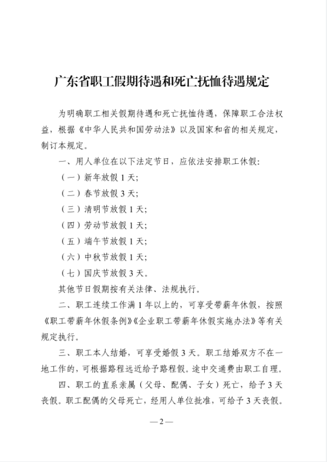關(guān)于印發(fā)《廣東省職工假期待遇和死亡撫恤待遇規(guī)定》的通知