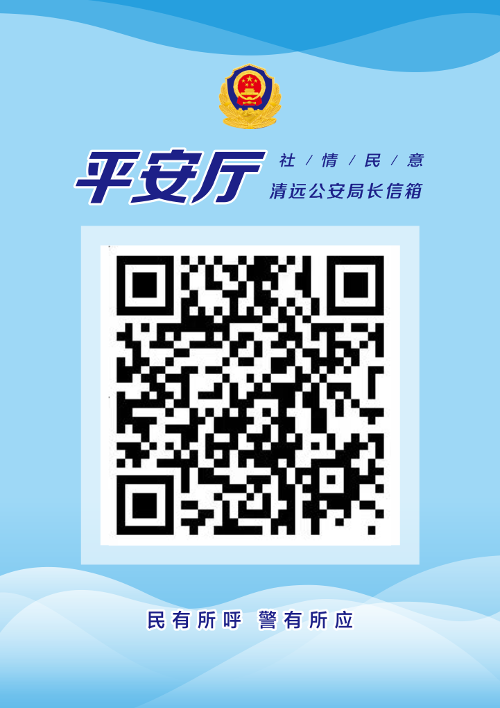 建設(shè)更高水平的平安清遠(yuǎn) 離不開您的支持和參與 維護清遠(yuǎn)治安秩序穩(wěn)定 離不開您的建言獻策 清遠(yuǎn)公安“局長信箱” 認(rèn)真對待核處 每一位群眾的來信咨詢訴求 及時給群眾解難答疑 在2024年春節(jié)來臨之際 清遠(yuǎn)公安“局長信箱” 通過“平安清遠(yuǎn)”微信公眾號 開展有獎諫言征集活動 廣泛收集人民群眾 對清遠(yuǎn)社會治安和公安工作的 意見建議及訴求 來信即有可能獲得警營文創(chuàng)禮品! 1.活動期間,信箱征集有關(guān)建設(shè)“平安清遠(yuǎn)”的意見建議,并在2024年3月10日前從來信中選取100封積極正面、有建設(shè)性意見的來信,贈送相關(guān)獎品; 2.本活動最終解釋權(quán)歸清遠(yuǎn)市公安局所有。 掃描下方圖片中的二維碼 進入留言界面 提交您的信件 2024年2月1日至2024年2月29日 (圖為獎品樣式;每封來信限領(lǐng)一份獎品,獎品隨機發(fā)放) 1.現(xiàn)場領(lǐng)?。呵暹h(yuǎn)市公安局來訪接待室,聯(lián)系電話:0763-3463333; 2.領(lǐng)獎時間:2024年3月11日至2024年3月31日。 我們會認(rèn)真對待每一封來信 做到“件件有回復(fù),事事有回音” 歡迎廣大群眾向 “平安廳”清遠(yuǎn)公安“局長信箱”寫信 溫馨提醒 局長信箱 不受理報案 不接受緊急報警求助 當(dāng)公民遭受不法侵害 需要舉報正在發(fā)生的違法犯罪行為、糾紛 等緊急情況時 應(yīng)及時撥打110報警 或到就近的公安機關(guān)報案