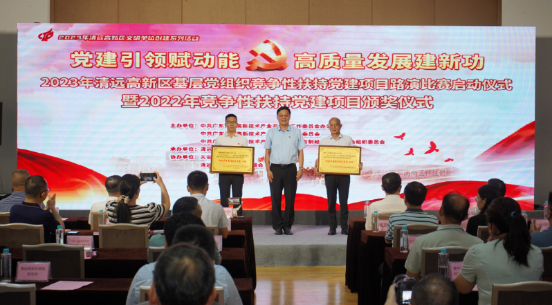 ▲與會(huì)領(lǐng)導(dǎo)共同啟動(dòng)2023年清遠(yuǎn)高新區(qū)基層黨組織競(jìng)爭(zhēng)性扶持黨建項(xiàng)目路演比賽。