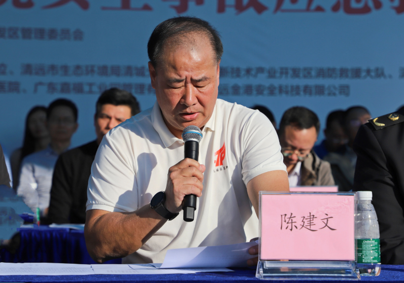 12月7日,一場以模擬清遠(yuǎn)雅克化工有限公司發(fā)生泄漏事故為背景的生產(chǎn)安全及突發(fā)環(huán)境安全事故應(yīng)急演練在高新區(qū)舉行。區(qū)黨工委委員、管委會副主任陳建文、清遠(yuǎn)市應(yīng)急管理局四級調(diào)研員歐延?xùn)|等相關(guān)部門領(lǐng)導(dǎo)及企業(yè)相關(guān)負(fù)責(zé)人出席現(xiàn)場演練活動。
