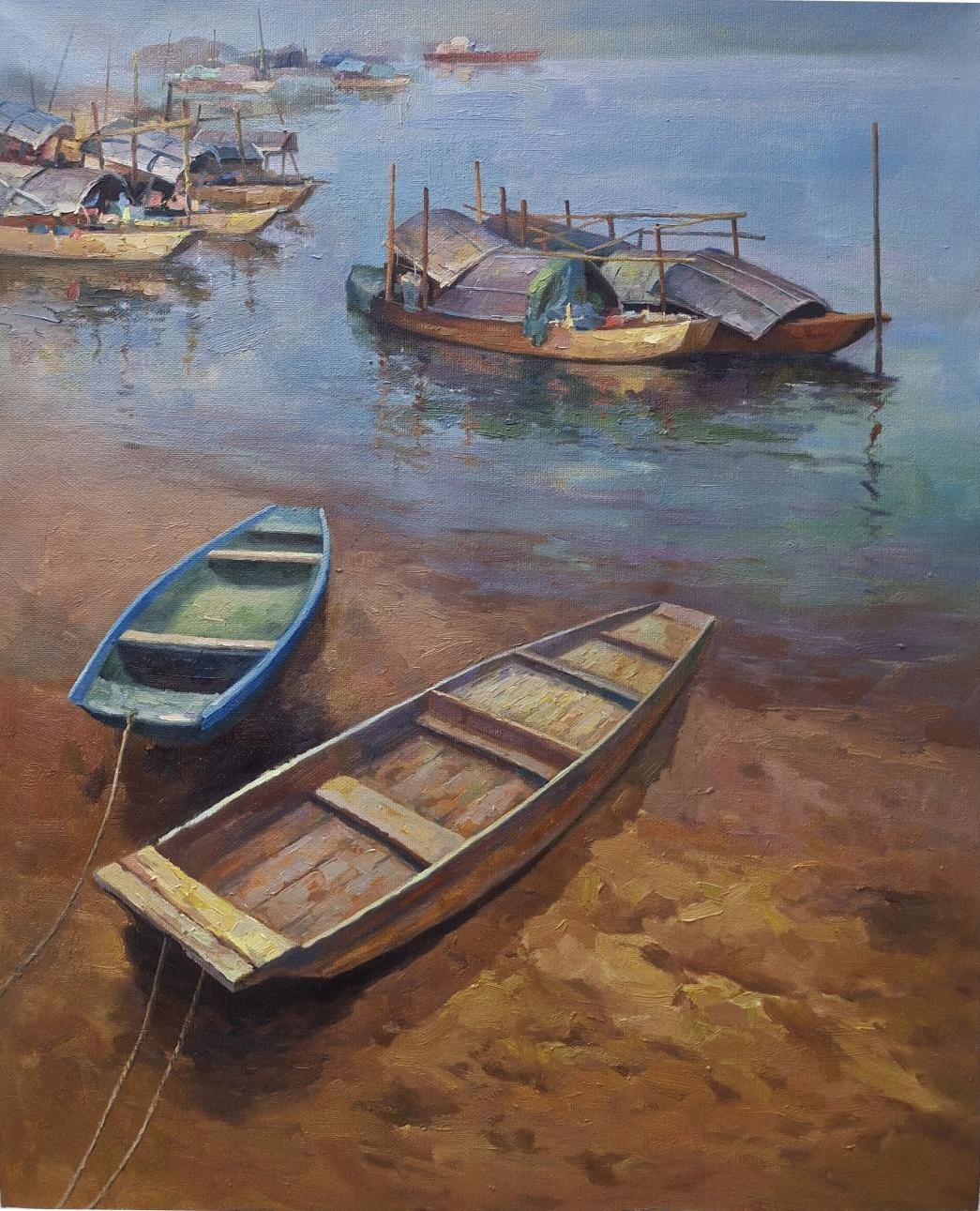 ▲吳偉湖 《北江渡口》 油畫 65×85cm