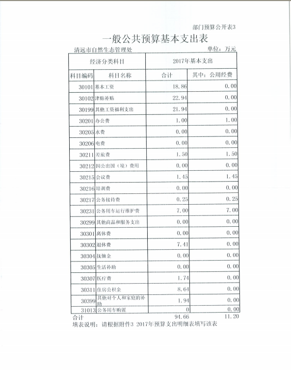 清遠(yuǎn)市自然生態(tài)區(qū)管理處2017年預(yù)算情況