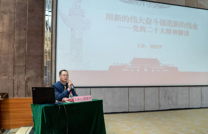 最后,清遠(yuǎn)市社會科學(xué)界聯(lián)合會原主席、二級巡視員、清遠(yuǎn)市委宣講團(tuán)成員劉國華同志作黨的二十大精神專題授課。他重點圍繞加快構(gòu)建新發(fā)展格局,著力推動高質(zhì)量發(fā)展;實施科技興國戰(zhàn)略,強(qiáng)調(diào)現(xiàn)代化人才支撐;堅定不移全面從嚴(yán)治黨,深入推進(jìn)新時代黨的建設(shè)偉大工程等方面,生動形象、詳細(xì)透徹地向與會人員對黨的二十大報告內(nèi)容和精神作了全方位、深入的解析。