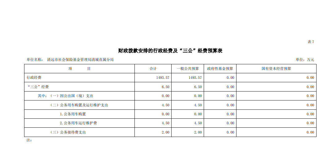 2020年市社會保險基金管理局清城直屬分局財政撥款安排的行政經(jīng)費及“三公”經(jīng)費預(yù)算表