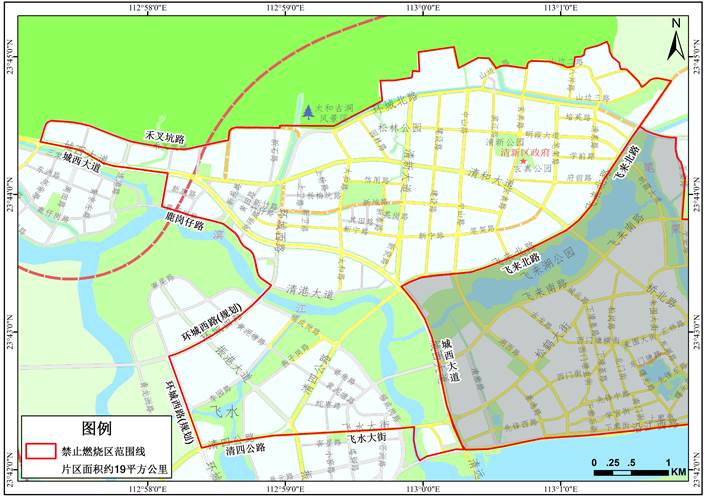 清遠市中心城區(qū)禁燃區(qū)范圍示意圖