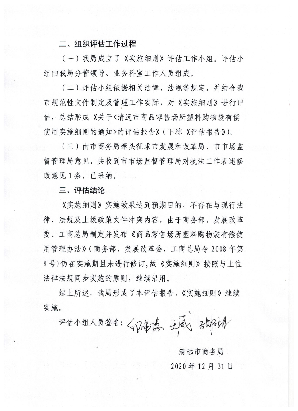 關于《清遠市商品零售場所塑料購物袋有償使用實施細則》的評估報告
