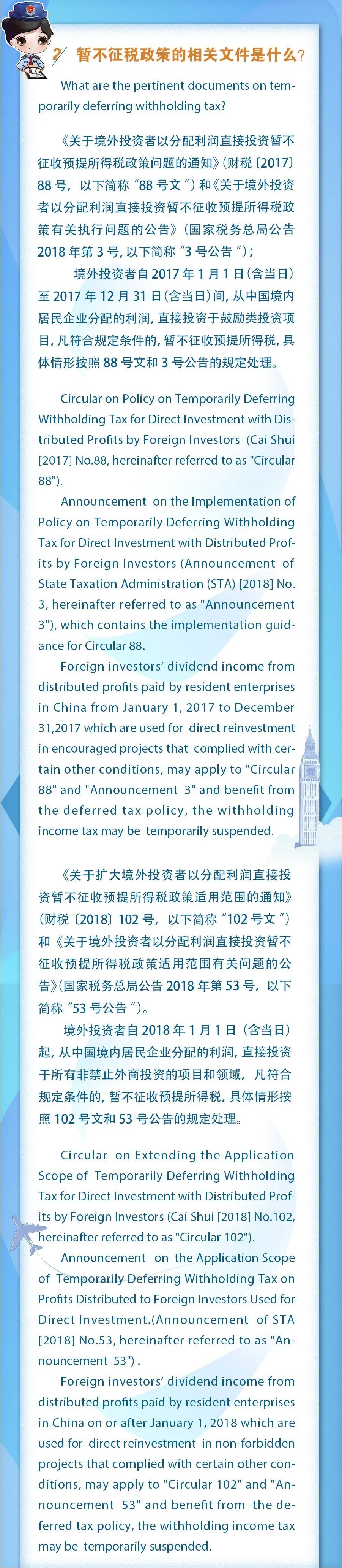 中英對(duì)照|境外投資者以分配利潤直接投資暫不征收預(yù)提所得稅政策問答