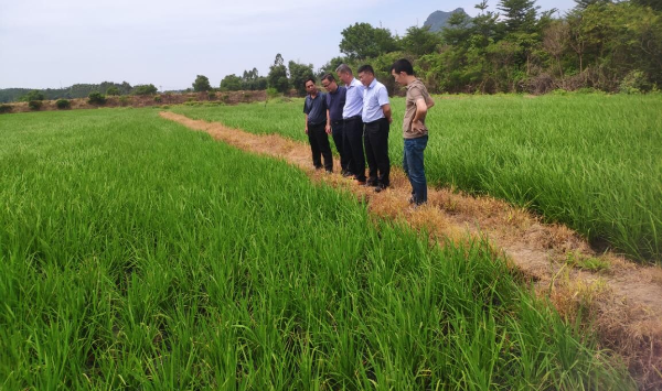捐贈儀式后,調研組一行走進田間地頭,察看晚造糧生長、田間管理等情況。