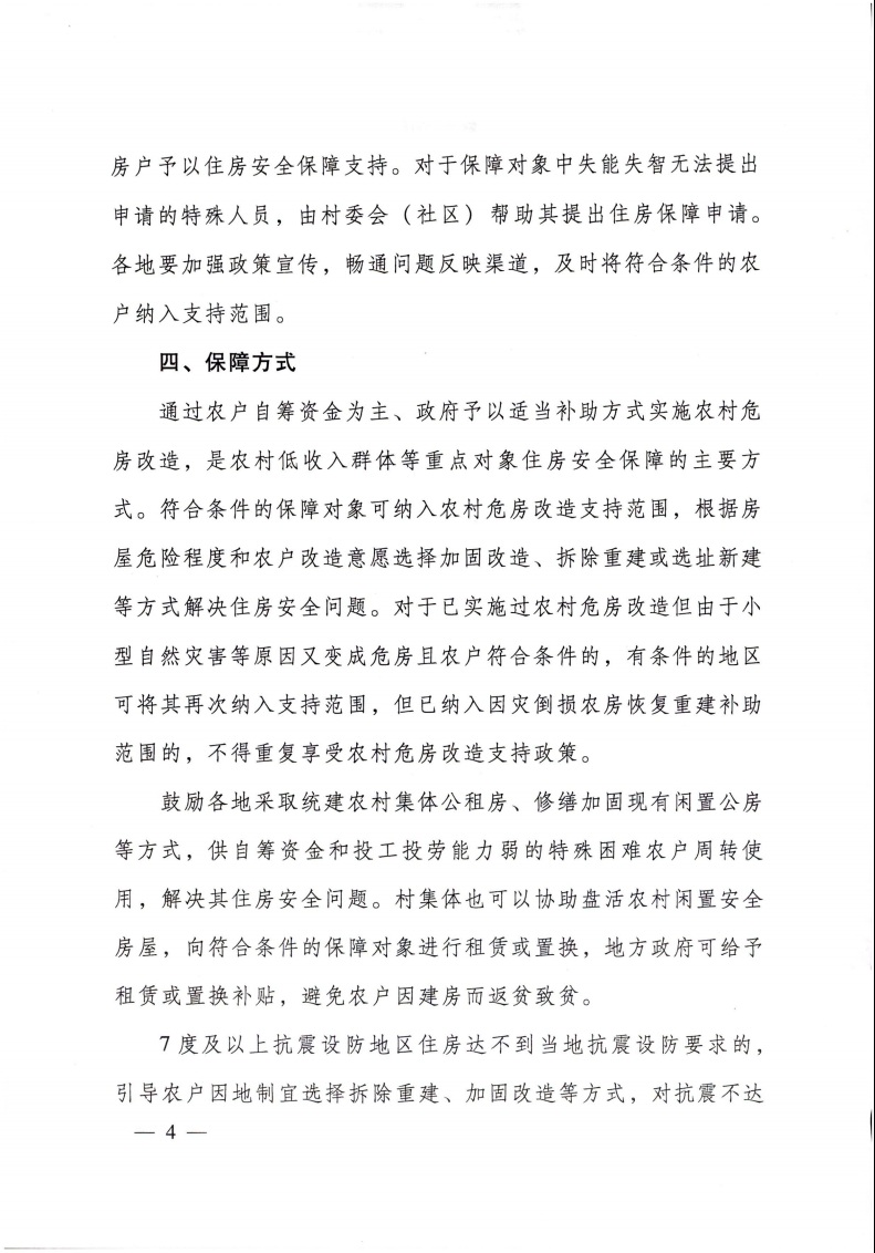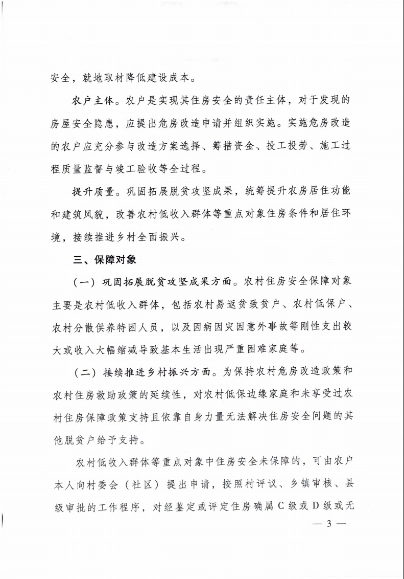住房和城鄉(xiāng)建設(shè)部 財(cái)政部 民政部 國(guó)家鄉(xiāng)村振興局 關(guān)于做好農(nóng)村低收入群體等重點(diǎn)對(duì)象住房安全保障工作的實(shí)施意見(jiàn)