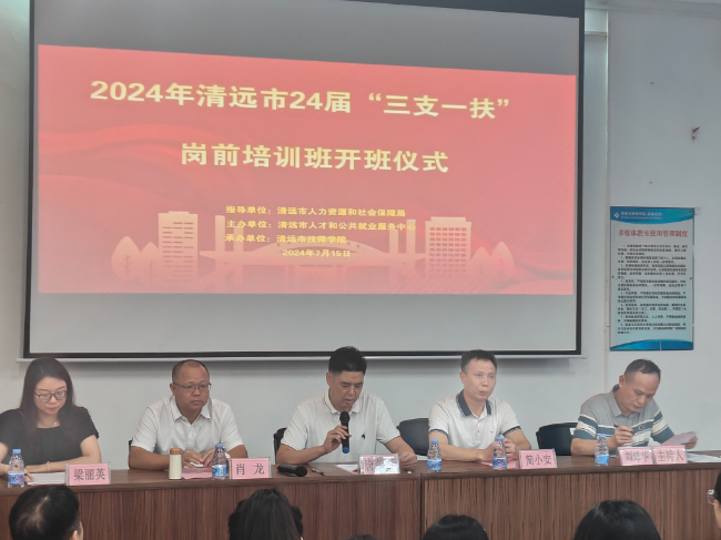 7月15日,清遠(yuǎn)市2024屆“三支一扶”人員崗前培訓(xùn)班在清遠(yuǎn)市高技能公共實訓(xùn)中心順利開班,市人力資源社會保障局黨組成員、副局長唐榮偉出席開班儀式并作動員講話,全市2024年新招募的161名學(xué)員參加為期5天的培訓(xùn)。
