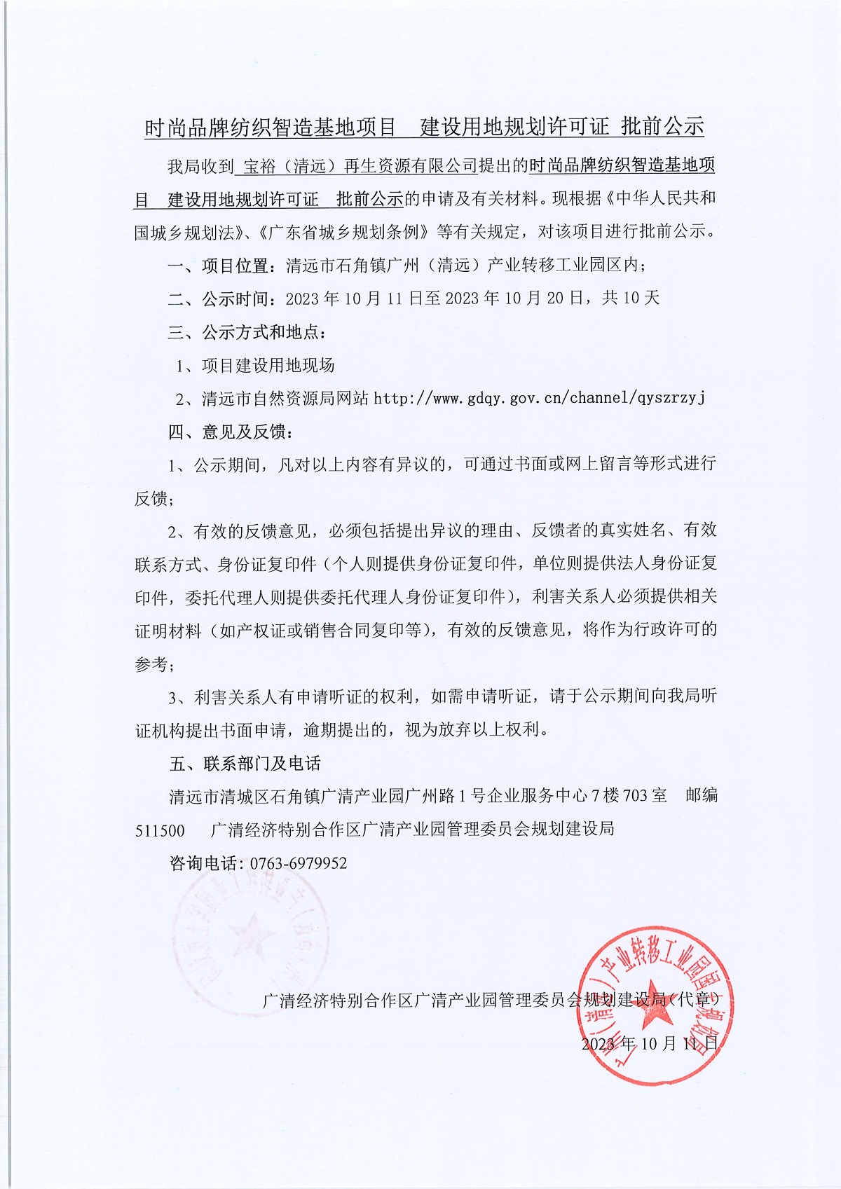 時尚品牌紡織智造基地項(xiàng)目 建設(shè)用地規(guī)劃許可證 批前公示
